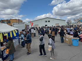 男山(永山二ノ七)が十九日、「男山市民感謝デー」を開き、振舞い酒や当日限定の商品を求め約八千人の来場者で賑わった。