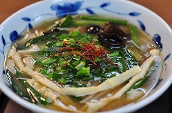 メニューは、“食の天才”畠中さんが開発した数々のスープの中から三種類、麺六種類を使い分けて創作したラーメンが中心。「塩」の山頭火、「しょう油」のあさめし前田(")・本舗。ならば、同店は「惣菜しょう油ラーメン」が売り。