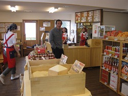 白樺の木立の中に建つ店内では、農場で栽培した新鮮な野菜や自社工場製の加工品、そして従来から人気の「農場のトマトカレー」や「玄米入りソーセージ」、ソフトクリームなど、生産者ならではの味を楽しめる。