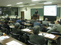 約五十人が参加。元旭川大学教授で、旭山動物園の経済波及効果の研究で知られる小野崎教授は、「地域経済の再生と大学の役割 『ものづくり』を軸として」と題して話した。地方の自治体が疲弊し、さらに少子高齢化や経済のグローバル化が進展する現状の下で、地方自治体が目指すべき は内発型の地域振興。「イノベーター的なリーダーを育てる大学が必要だ」と自論を展開した。