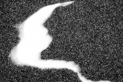 写真は、氷結した糠平湖で撮影した一枚。風が湖面に積もった雪を動かし、曲線を描いた。湖面はほとんど光を反射せずに黒く写り、対照的に雪がエアブラシで吹き散らした白いインクのように見える。