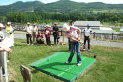 知的障がい者施設対抗のパークゴルフ大会が十日、江丹別町嵐山のパークランド嵐山で開かれ、施設代表の選手たちが、団体戦、個人戦を競い合った=写真。