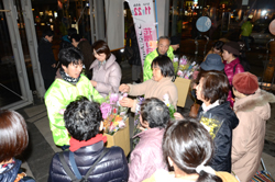 配った花は旭川産のスターチース、熊本産のカスミソウ、愛知産のバラ、合わせて三百本。午後三時と五時の二回に分けて配布した。二回目の花にはクジが付いており、当たった人には買受人組合の加盟店が作ったアレンジメントフラワーが贈られた。