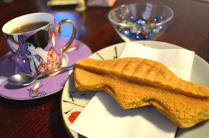 「トキワ焼き」は、あさひかわ新聞に絵とエッセイ「散歩の目線」を連載している絵本作家・堀川真さんのデザインによる旭橋の形をしたおやきです。