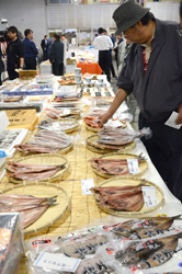 「海の恵みの食文化」をテーマに掲げ、魚食を消費者にアピールしようと、鮮魚やカニ、エビ、魚卵、ギフト加工品など千五百ものアイテムが展示された。