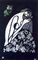切り絵を始めた当初は、ミュシャやクリムト、ボッティチェリなどの名画を下絵に、モノクロのコピー的作品を制作していた。しかし元々グラフィックデザインが好きだったこともあって、次第に独自色が強まっていった。