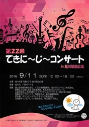 第二十二回「てきに~じ~コンサート」が十一日(日)午後一時から、旭川駅前広場(宮下通八)で開かれる。アマチュアバンドが出演し、午後五時まで熱いステージが続く。