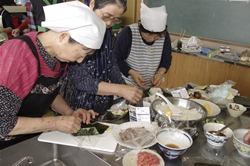 比布町の食材をふんだんに使った「おにぎらず」作り交流会が二十五日、比布町福祉会館(比布町北町一)で開かれた。町の生産者と消費者の交流を目的に活動している田園交流推進会議(久保正敏会長)の主催。