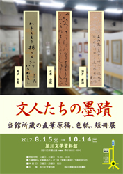 旭川文学資料館(常磐公園・常磐館内)が十月十四日(土)まで、「文人たちの墨蹟」展を開催しています。