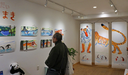 絵本作家・あべ弘士さんの原画展「とらのまき」が十二月二十四日(日)まで、ギャラリープルプル(七条買物公園)で開催中だ=写真。
