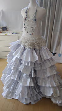 建物がテーマの絵画、切り絵、写真、模型、ペーパークラフト、古い図面など約五十点を展示しています。設計図を材料にして制作したドレスや、建物の絵を染め抜いた手ぬぐいなど、ユニークな作品も並んでいます。