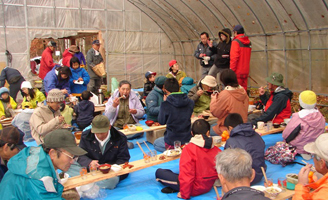 温かな服装、山歩きに向いた靴、軍手や手袋など、各自考えて参加すること。雨に備えて、カッパを用意した方がいいでしょう。また、お椀と箸を持参してください。午後二時ごろ、解散の予定です。