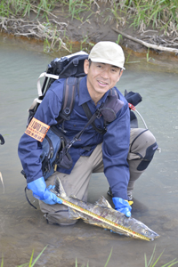 忠別川でサケの遡上調査をしている山田直佳さん(50、日本釣振興会北海道地区支部)が講師を務める「サケ遡上見学会」が二十七日(土)午後一時から、忠別川で行われます。市科学館が行うシロザケ生態展示会の関連事業です。