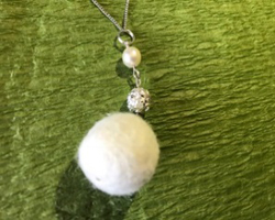 フェアでは、アクセサリーのハンドメイドを体験できます。小さく丸めたアルパカたちの原毛から好きな色を選び、様々なパーツを組み合わせて、自分だけの特別なアクセサリーを完成させます。ネックレス、ピアス、ペンダントのほか、アルパカ型のストラップなども作製できます=写真。料金は千円から。自分の手でつくるのはもちろん、スタッフに希望を伝えてつくってもらうこともできます。