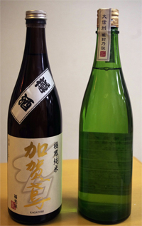 樽酒加賀鳶極寒純米酒は七百二十㍉㍑入り、千八百九十円。大信州酒造ふなば詰めは七百二十㍉㍑入りが千九百四十四円、千八百㍉㍑入りが三千七百八十円です。