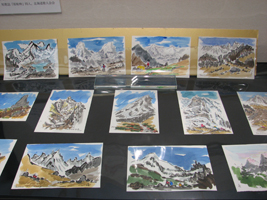 今村朋信さんのヒマラヤ風景(水彩画)や牧野衛さんの高山植物(シルク・スクリーン)、鈴木弘さんの国内外の山々(写真)のシリーズなど、力作・傑作ぞろいの年賀状展だ。入場無料。