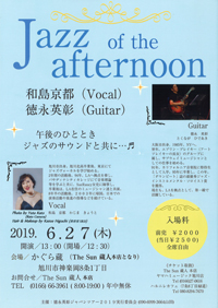 旭川を中心に活動するジャズボーカリストの和島京都さんと、ロサンゼルスを拠点に活動するジャズギタリストの徳永英彰さんのライブが二十七日(木)午後一時から、かぐら蔵(神楽岡八ノ一)で開かれます。