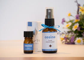 商品ラインナップは、アロマ(五㍉㍑・二千二百円+税)とミスト(三〇㍉㍑・二千円+税)の二種類で、直営店と公式オンラインショップ(https://store.cosine.com/)で販売します。