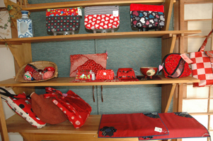 朱色は古くから縁起物に使われ、元気が出る色ともいわれています。旭川と函館で活躍している作家たちが、朱色のフェルトを使ったブローチや布で作った小物、バッグ、洋服など約百点を展示しています。