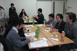 その後、同クラブの会員も加わり、六人ごとのグループになってケーキを食べながら感想などを話し合った。
