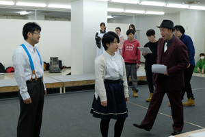 稽古中は、時おり演出の高田学さんからの指示が飛び、出演者はそれぞれの動きを確認しながら演じていた。