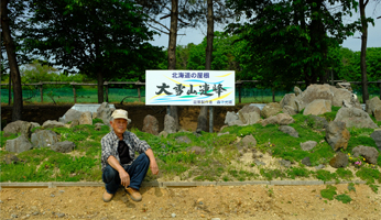 敷地内にある大きな盆景は、森下光晴さん(79)が大雪山連峰をモチーフに製作した。神村武理事長は、「ここを訪れた人に、大雪山のスケールを感じてもらえたら」と話す。