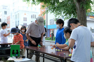 旭川サイエンス・ラボによる工作教室が十一日、七条緑道で行われた。まちなかぶんか小屋の主催。長年ボランティアで工作教室を続けている、元旭川工業高校教諭の村住俊三さんを講師に、年長から小学六年生の九人が参加した。