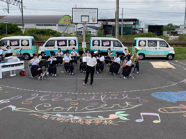 コンサートには、吹奏楽部の部員十八人が参加した他、同校の美術部員四人が駐車場にチョークアートを描いて会場を盛り上げた。