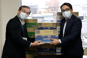 同社道北営業部旭川営業課の佐藤幸一課長は「今年はコロナ禍で、いろいろな方が苦しんでいると思います。私たちはジュースを売っている会社なので、そのジュースで少しだけでも、日ごろお世話になっているみなさまの役に立てたら」と話した。