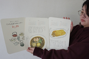 デザイナーの阿部路子さん(よつば舎代表)の絵と、本紙連載中の「北海道方言考 新なまってんだべか」を組み合わせたカレンダー「みちこ と みのるの くいしんぼうカレンダー2021」が完成しました。