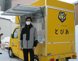「多くの人にその美味さを知ってもらうために、クラフトビールを飲む機会をできるだけ広げたい」と三本雅行さん(40)は黄色いキッチンカーを走らせている。