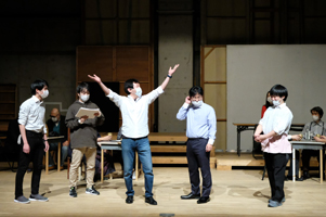 昨年五月、新型コロナ感染拡大の影響から、八月に予定していた本公演の延期が決定。六月ごろから、ビニールシートで仕切って台本の読み合わせをするほか、シーン別に区切って少ない人数で行うなど、様々な方法で稽古を進めてきた。その後、本番が近づくにつれて徐々に稽古の回数を増やすなどして、今年一月には実際の舞台の市民文化会館小ホールでの通し稽古も行った。