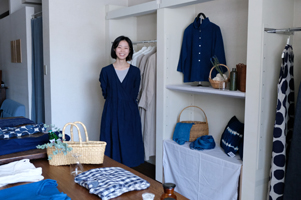 店内には国内外からセレクトした、長く使える生活雑貨や洋服などが並ぶ。また、センターテーブルに並ぶ商品は、月ごとにラインナップが替わり、四月は、藍染めのコットンや麻など天然素材の洋服、五月はカゴやトタンのボックスなどの荒物市を予定しているという。