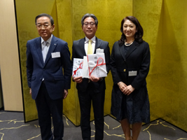 会の冒頭贈呈式が行われ、千葉会長から厚谷司市長に、会見などで使用するバックパネルの目録が手渡された。また、会員のスナック経営・馬場瑞穂さんから、三菱大夕張炭鉱に勤めていた父親の遺品、石炭の大きな塊りなど三点が、大地コンサルタントからは二百万円の寄付が贈られた。