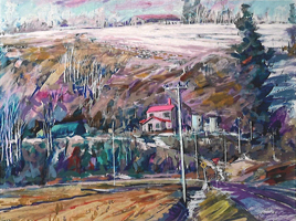斎藤健昭/神居の岡・共栄『廃屋と牧場』油彩15号