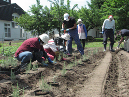 東川町で介護の活動をしている「ぼだい樹の会」が十六日、町から借りて野菜や花を栽培している農園の一角にローズマリーの苗を植栽した。事務局長の村田節子さん(73)は「ローズマリーは認知症に良いとお聞きしたものですから、植えてみようと…」と、笑顔で植栽の動機を話す。