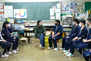 「アーティスト・イン・レジデンスあさひかわ(AIRA)」の招へいアーティスト、現代美術家の保良雄(やすらたけし)さんが五日、旭川北高の生徒と交流した。