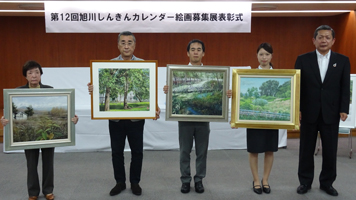 旭川信用金庫(原田直道理事長)が来年のカレンダーに採用する絵画を選ぶコンクール「旭川しんきんカレンダー絵画募集展」の表彰式が二十四日、同庫本店で開かれた。