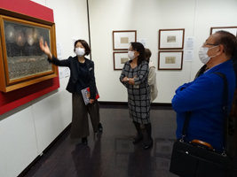 閉館した後の午後六時、展示室前のホールに十一人の参加者が集まった。案内役はFMりべーるのパーソナリティ、マダム・ケロコさんと同館の学芸員・関口千代絵さん。