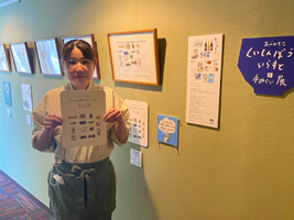 デザイナーのあべみちこさん(よつば舎代表)の作品展「くいしんぼういらすとと手ぬぐい展」が、和風旅館「扇松園」(高砂台三)で開かれています。