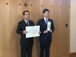 市防災安全部交通防犯課から、依然として絶えない特殊詐欺を防ぐための映像製作の費用などの相談を受けた井下社長が、「二十年以上にわたって市の広報番組を製作してきた。当社が創業五十年を迎える節目の年でもあり、特殊詐欺防止のためにぜひ協力したい」と寄贈を申し出た。