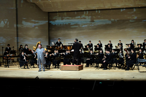 旭川永嶺高校吹奏楽部の定期演奏会が十二、十三日の二日間、市民文化会館大ホールで行われた。その中のスペシャルステージでは、旭川出身のバリトン歌手・豊嶋祐壹(ゆういち)さんと共演。豊嶋さんが、同校吹奏楽部の演奏にのせて、「フニクリフニクラ」など三曲を歌い上げた。