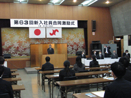 旭川商工会議所に加盟する企業に今春、入社した新入社員の合同激励会が三月三十一日、同会議所内で行われ四十社から九十八人のフレッシュマンが出席した。