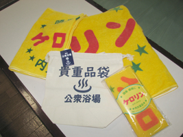 一周すると、景品は特製の「公衆浴場貴重品袋」と“ケロリングッズ”のコップに、入浴券が付きます。