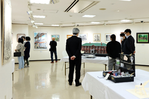 建物の美しさを絵画や版画、立体模型、ペーパークラフトなど、様々な手法で表現する同会独自の企画展。六回目となる今回は、十~八十歳代四十人の作品、六十六点が展示されている。
