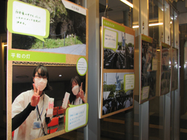 二人は八月七日から十日まで長崎市を訪問。平和祈念式典に出席したほか、原爆資料館や原爆落下中心地碑、今でも原爆の傷跡の残る浦上天主堂、防空壕跡などを訪れ、全国から集まった生徒たちと意見の交換を行った。この時の様子や感想を写真とともに展示して、「戦争の悲惨さや、平和の大切さを多くの市民に知っていただきたい」と訴えている。