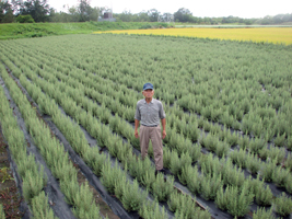東川町に住む松家農園の松家源一さん(74)は五年前、手探りでローズマリーの栽培を始め、現在では二十二㌃の畑に一万二千株のローズマリーを栽培している。日本一広いローズマリー畑だという。
