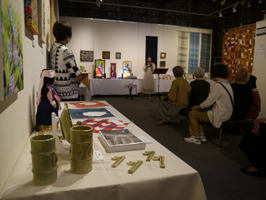 日韓手工芸交流展が九月三十日から三日間、市民ギャラリー(宮下通十一)で開かれた。期間中は連日、ハープやオカリナなどの演奏会が行われ、来場者は美しい手工芸品と音楽に癒された。