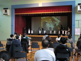 会場からは「これまで知らなかった同士がここに集まり、つながりができた。一緒に何かやろうとするなら、何がいい」と質問が出た。壇上の子どもたちから「クリスマスパーティー」「ハロウィン」との声が出ていた。(佐久間和久)