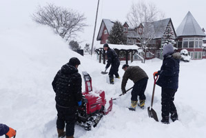 雪の中に埋めたのは、高さ三㍍、直径二㍍の七㌔㍑タンク二本。氷点下の極寒の中、輸送タンクの管が凍るトラブルもあり作業が止まる場面もあったが、八人の蔵人が約五時間かけて作業を行った。